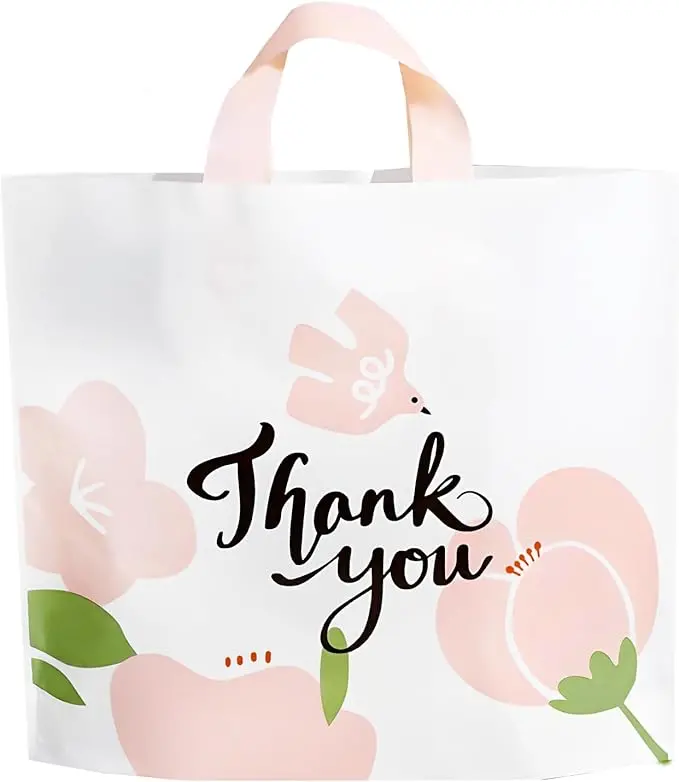 50 Pcs Plastic Shopping Bags- Plastic shopping bags with cute pattern design, and "Thank You"printed on both side.