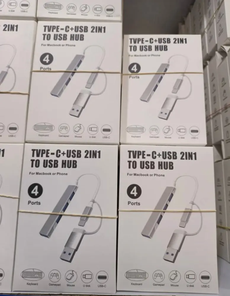 It features both a Type-C and a standard USB connector on a single cable for compatibility with various devices.