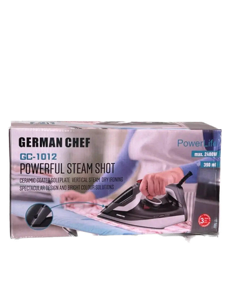 Features: Powerful steam shot, vertical steam, dry ironing capability, and a "PowerLify" function.