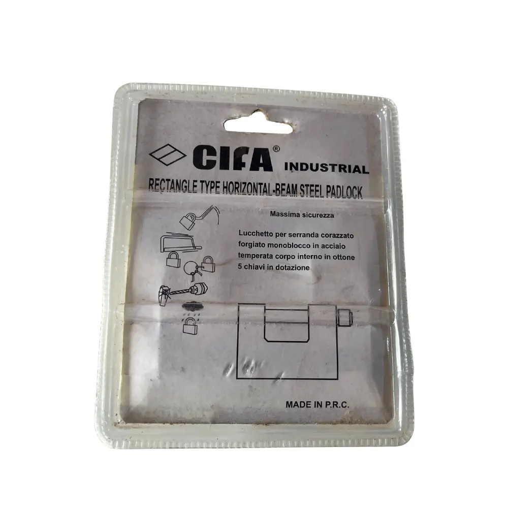 CICA Industrial Padlock, specifically a heavy-duty security lock designed for industrial and commercial use. It is branded as "CIFA" and "GIGA®" in the packaging, and features a "Design ITALY" label.