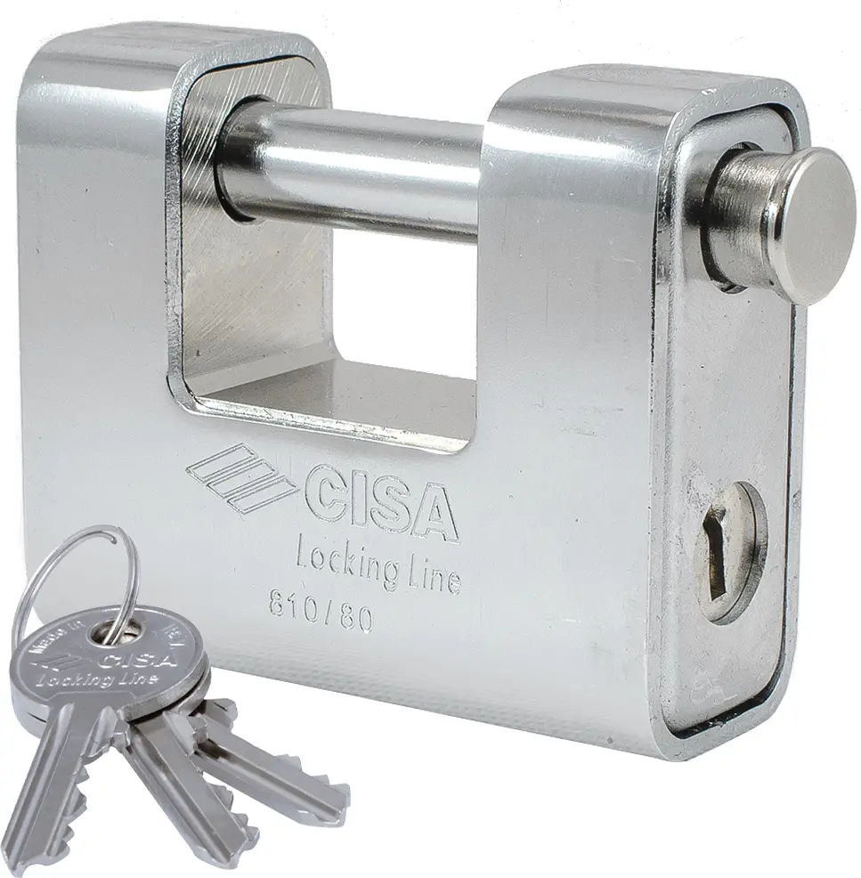 Type: Industrial, heavy-duty padlock, sometimes referred to as "top cycle" or container lock