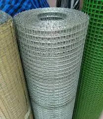 Galvanized welded wire netting or wire mesh, commonly referred to as chicken wire or hardware cloth, used for construction, agricultural fencing, and animal enclosures.