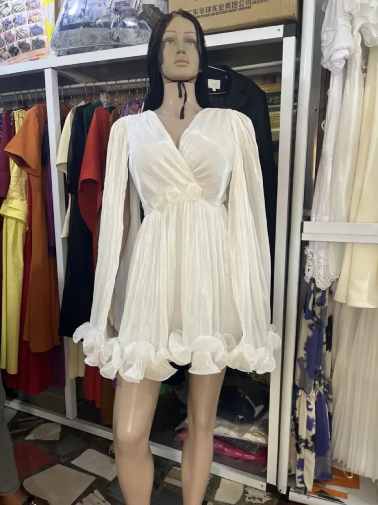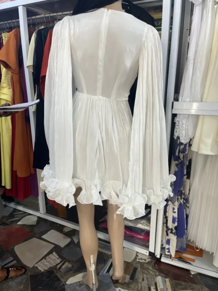 Tags:white pleated fabric, cape sleeve, pleated-cape mini dress, Ana Radu pleated-cape mini dress, featuring white pleated fabric