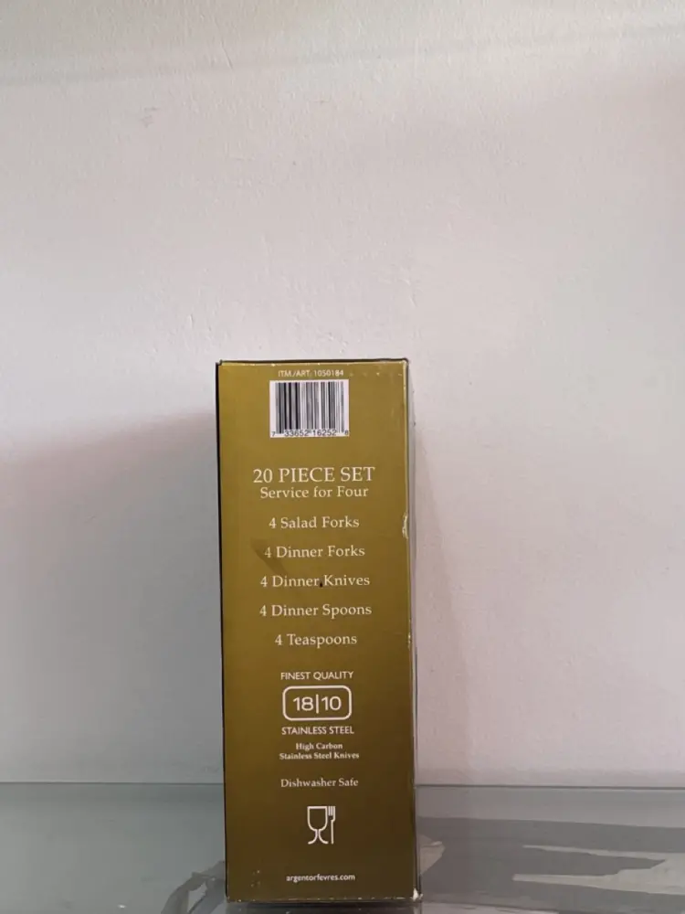 Product Details: 18|10 Stainless steel-High carbon stainless steel knives-Dishwasher SafeArgent Orfevres 20 piece (Service for 4) Alessi 18|10 Stainless Steel Flatware Set.