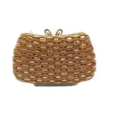 • Color Profile: It features a warm gold or champagne metallic finish, making it a neutral but high-impact piece that pairs well with jewel tones or classic black and white evening wear.