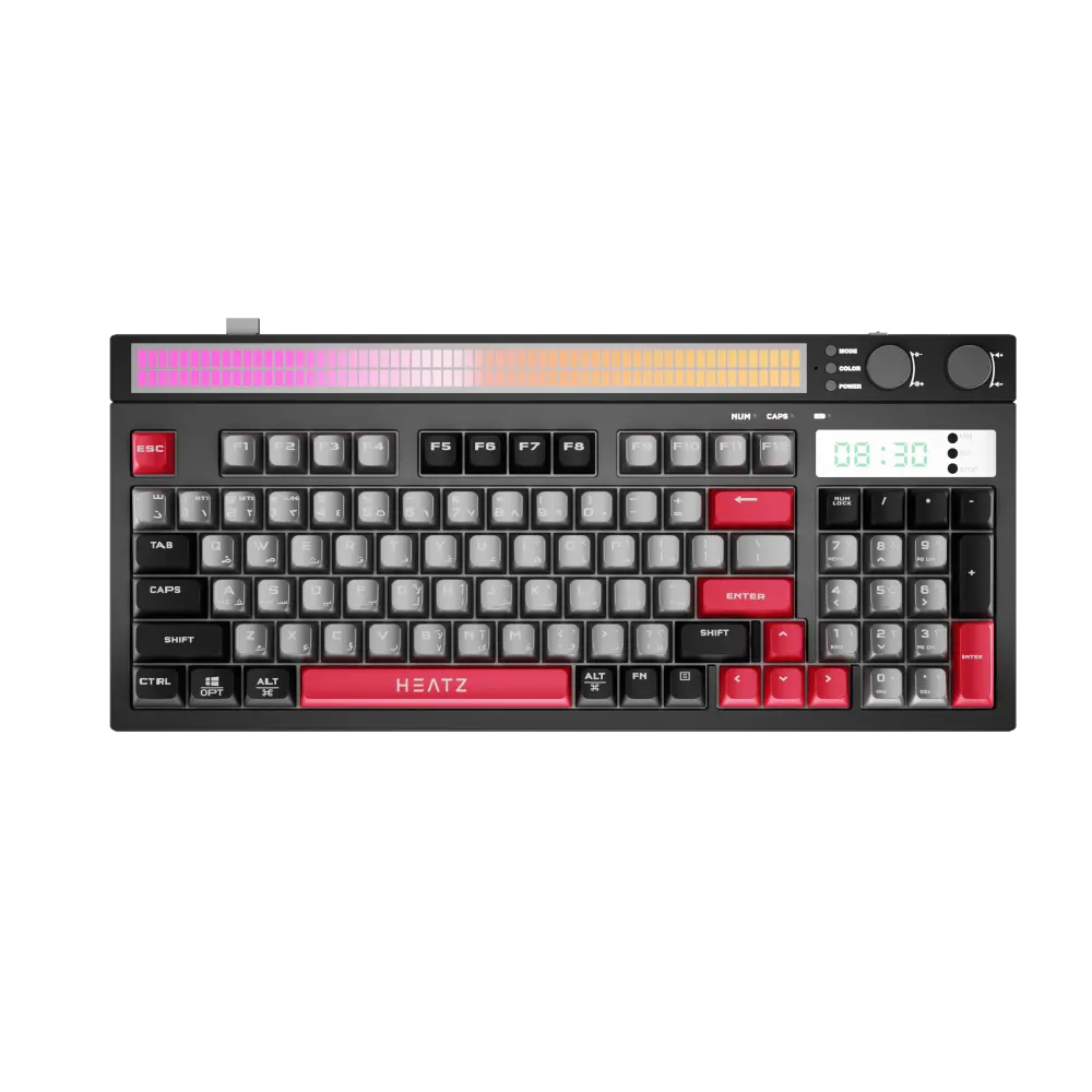 The ZK30 Keyboard offers seamless connectivity with Bluetooth 5.3, 2.4GHz wireless, and Type-C wired modes. Featuring a 2000mA rechargeable lithium battery, dynamic RGB lighting, and an audio controller, it’s built for gamers and professionals who demand performance and convenience.