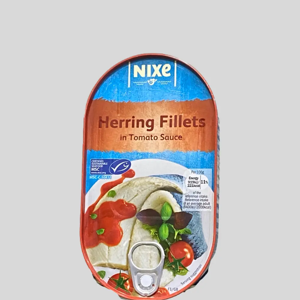 Indulge in a delicious and sustainably-sourced product with these Nixe Herring Fillets or Sardines in Tomato Sauce, Egg & Mustard & Pepper Sauce. These fairtrade certified fillets are perfect for those who want to enjoy a tasty and guilt-free snack. Available in optional packs, these fillets are perfect for any occasion, from a quick snack to a fancy dinner. These herring fillets or sardines are made by a trusted brand and come in a range of tangy, savoury sauces. With no mention of the item's condition, they are a perfect addition to your pantry and can be used in a variety of dishes. So why wait? Try these fairtrade Nixe Herring Fillets or Sardines today and savour a delicious and sustainable product