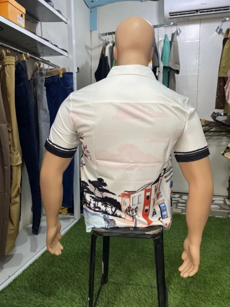 • Accents: The shirt includes a small branding emblem on the left chest, which is a common feature for premium "boutique" items sold in regions like Accra.