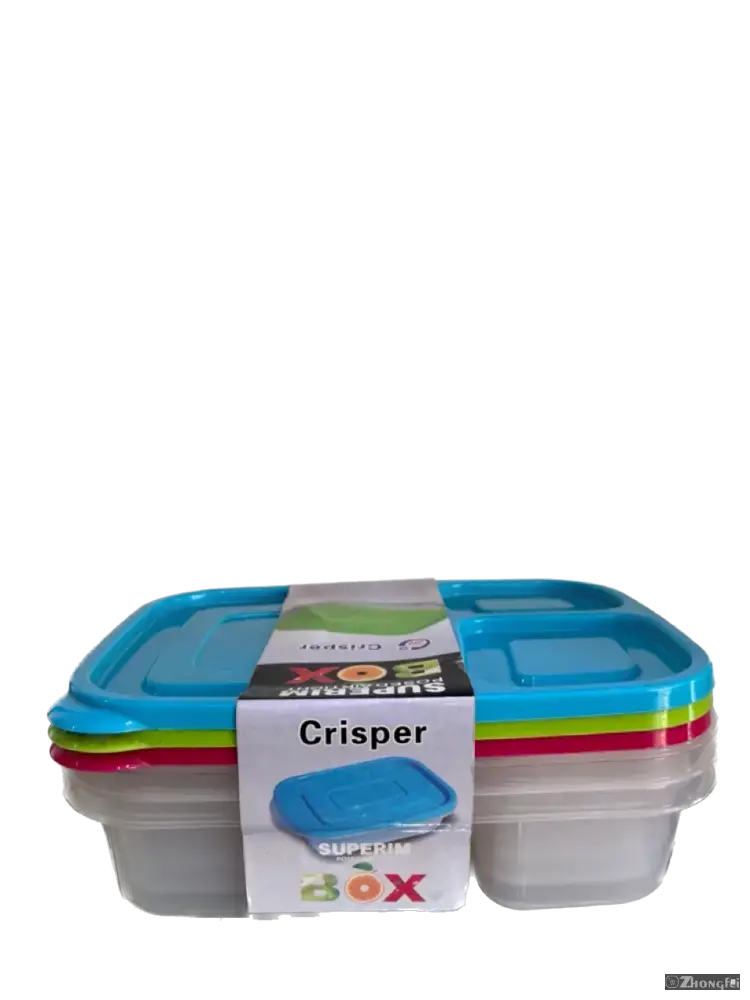 The image displays a set of Tupper Crisper Boxes, which are plastic food storage containers designed to keep food fresh.