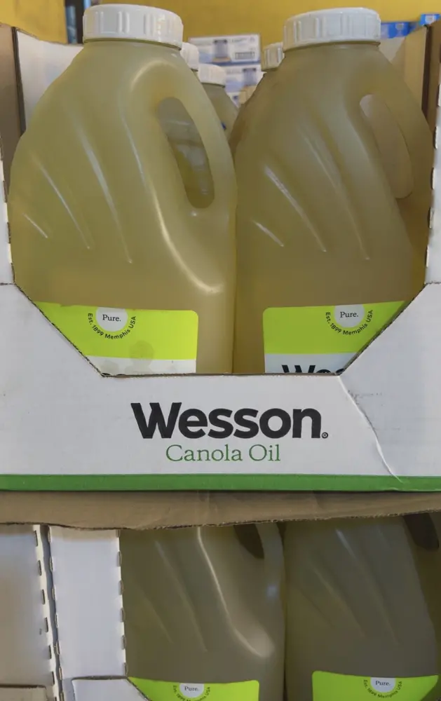 Wesson Canola Oil is a versatile 100% natural and heart- healthy cooking oil featuring a high smoke point ideal for frying baking and sautéing. It contains the least saturated fat and highest omega 3s among common oils, making it a low- cholesterol, preservative free choice.