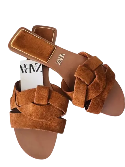 Design: Criss-cross or knotted suede straps with a flat silhouette.
