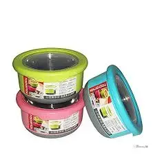 A multi colours and multi-purpose plastic container with inner stainless steel with timeless effort of using