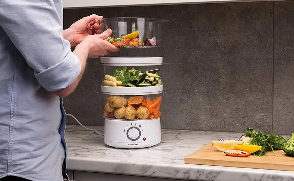 Make mealtime more exciting and your plate more nutritionally balanced with colorful, vitamin-packed foods. It’s easy with the Sabichi Steam Cooker. Add your choice of vegetables, seafood, or chicken breasts and you’re minutes away from serving a satisfying steamed meal the whole family will enjoy
