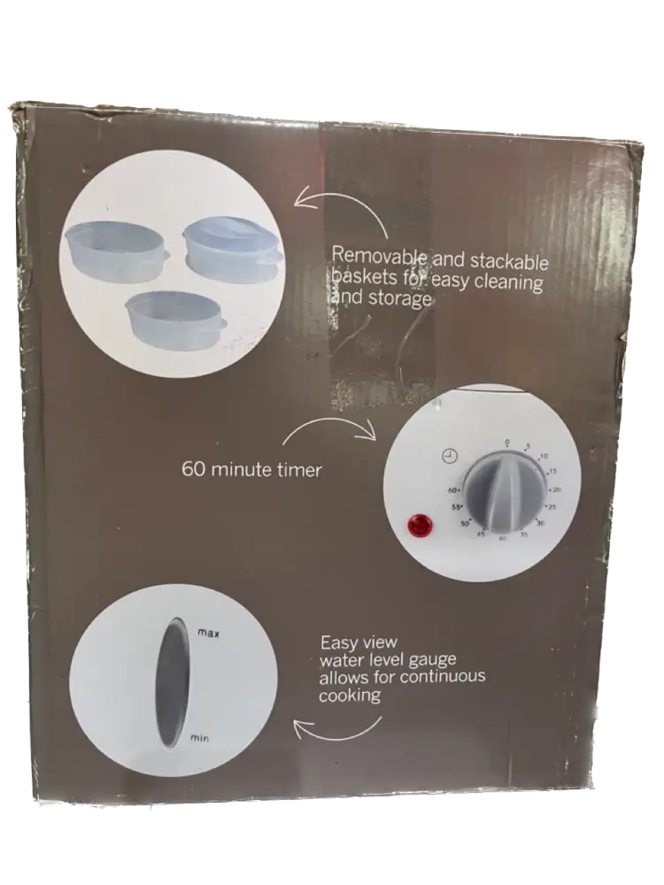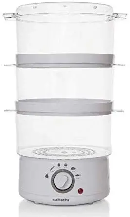 Set cook time up to 60 minutes (all time mentioned in the cook book for each recipe) Timer Auto Shuts-Off when cycle is completed and/or water has finished. Power indicator light gives you visual reference to know when unit is on. Healthy meals are simple and easy with the Sabichi 3-Tiered Food Steamer . No oil, no smoke, no mess - cleaning up is easy.