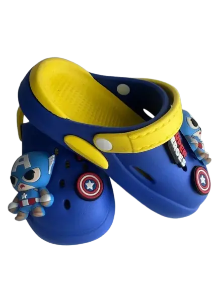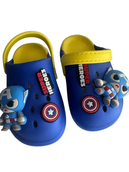 Marvel Captain America character clogs for boys, typically made from lightweight rubber or PVC materials. These clogs are designed for regular wear and often feature 3D charms of Captain America and his shield.
