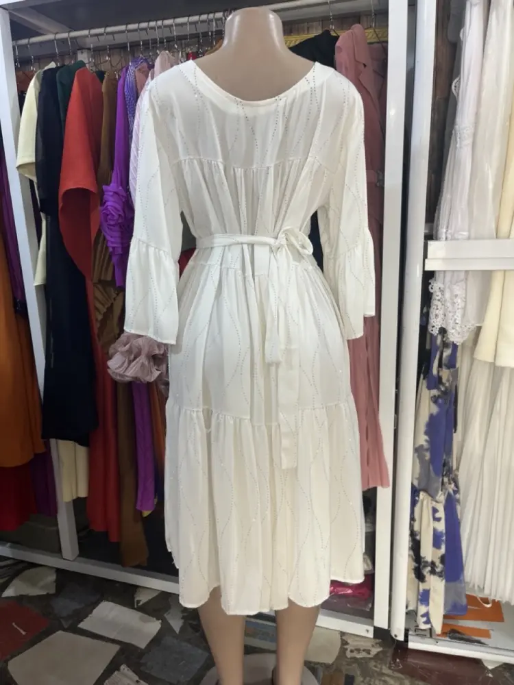• Elasticated or Tied Waist: Many versions include a built-in elastic waist or a matching sash to define the silhouette