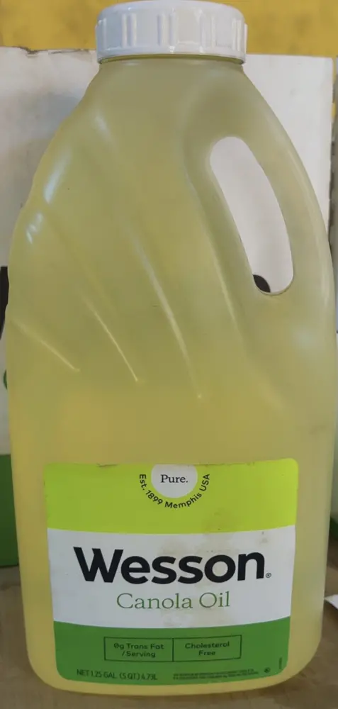 Wesson Canola Oil is a versatile 100% natural and heart- healthy cooking oil featuring a high smoke point ideal for frying baking and sautéing. It contains the least saturated fat and highest omega 3s among common oils, making it a low- cholesterol, preservative free choice.