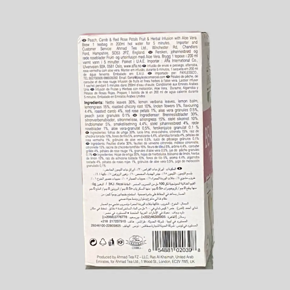 Ahmad Tea Herbal Tea, Peach, Carob, and Rose Petals 'Beauty' Natural Benefits Teabags, 20 ct (Pack of 1) - Decaffeinated & Sugar-Free