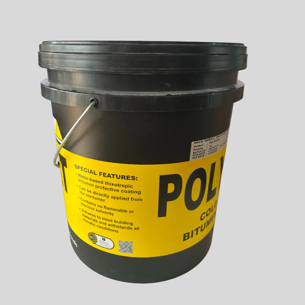 The product in the image is Polybit Polycoat Bitumen Emulsion, a water-based, cold-applied protective coating manufactured by Henkel Polybit.
