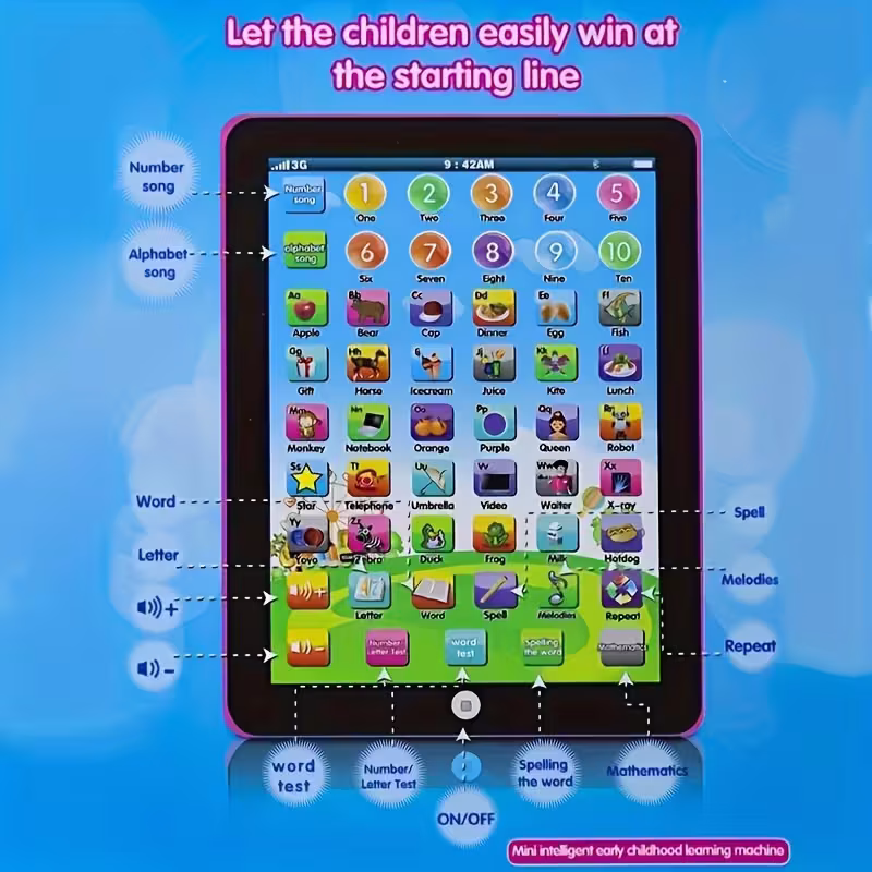 Learning Tablet-six-in-one Educational Game, Including ABC, Pronunciation, Spelling, Music And Math | Interactive Language Board with Colorful Learning Activities (blue, Without Batteries)
