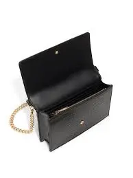 • Strap: It comes with a hybrid chain and faux-leather strap. The chain links are gold-toned to match the front hardware, while the top portion is typically synthetic leather for comfort on the shoulder.