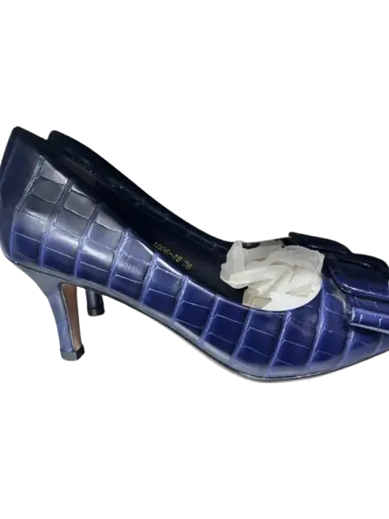 Material: The upper has a distinct mock-crocodile (croc-embossed) texture, which adds a high-fashion, structured look to the faux or genuine leather material.