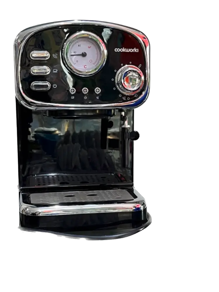Kick-start your morning with barista-style drinks using the Cookworks Espresso Machine. It features a 15-bar pressure pump, adjustable steam knob, milk frother, and stainless-steel filter for easy espresso or cappuccino making. The removable drip tray simplifies cleaning, while the auto shut-off and cup warmer add convenience and keep your drink hotter for longer. It also includes built-in protection against overheating and overpressure.