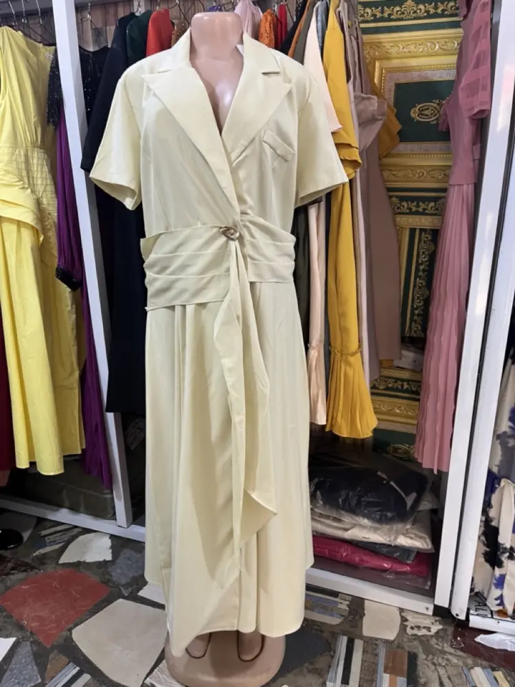 • Closure: Secured by a wrap-around tie or a full-length button-through placket.