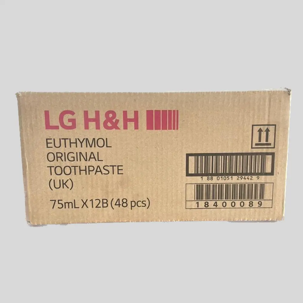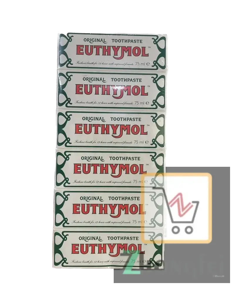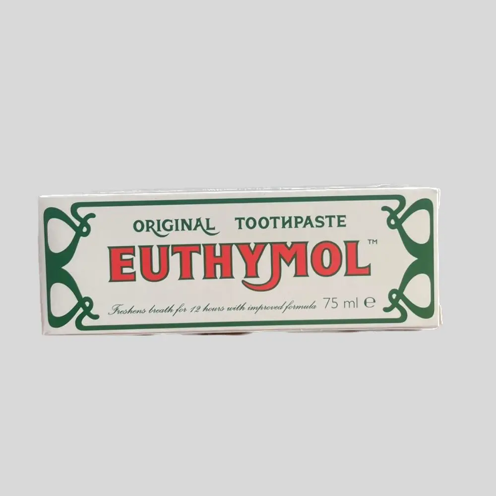 Euthymol Original Toothpaste in 75ml tubes. This distinctive, bright pink, fluoride-free antiseptic toothpaste is a classic British brand known for its strong, unique medicinal flavor derived from a blend of ingredients like eucalyptus and thymol.