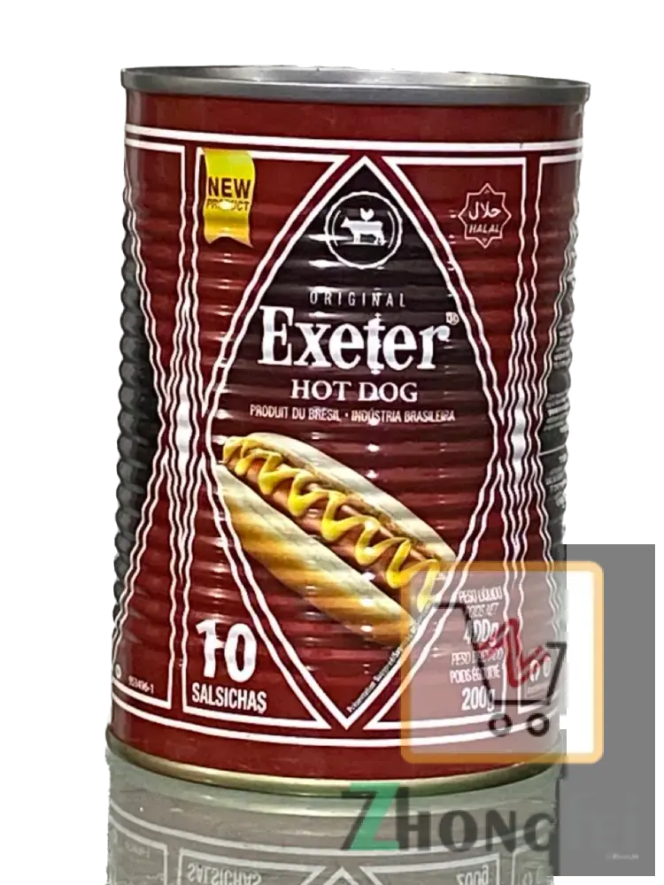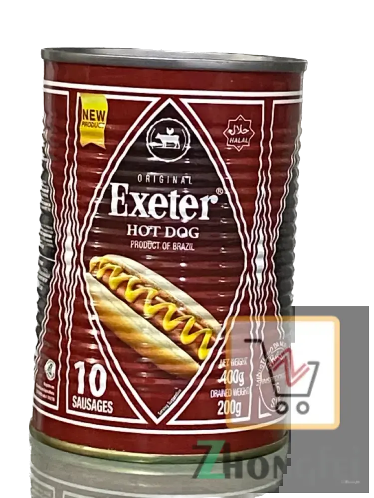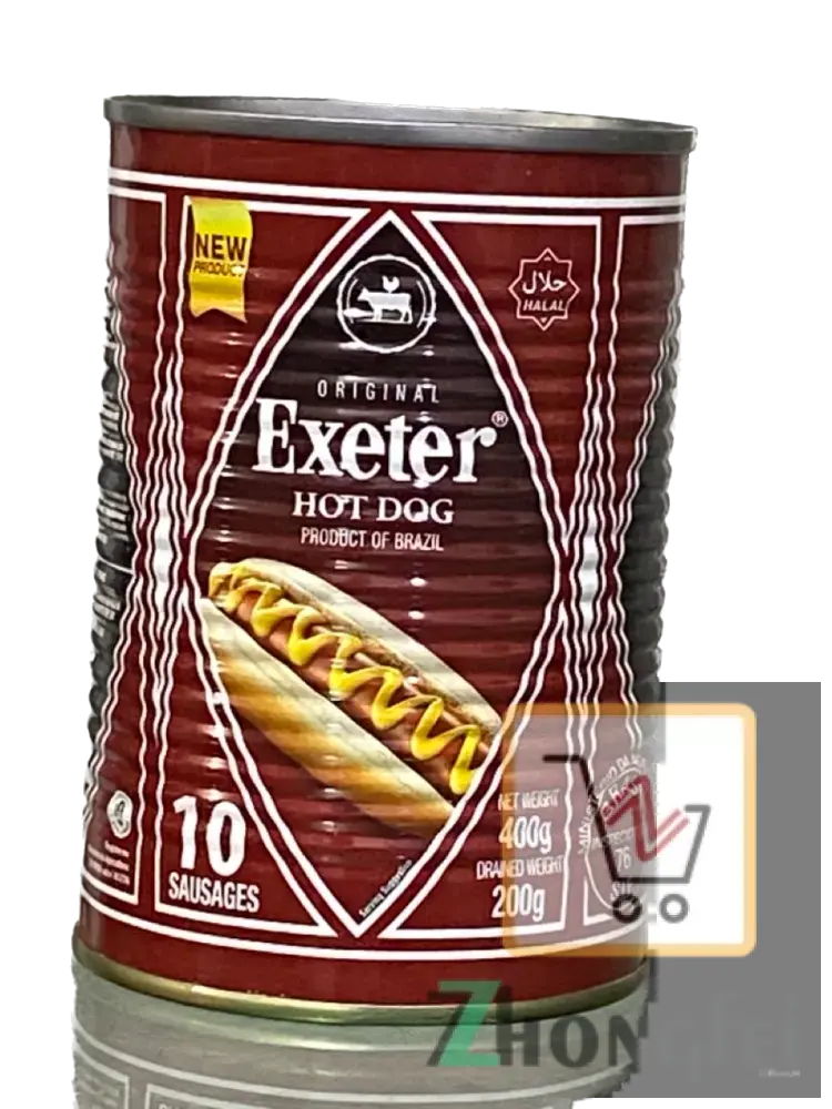 Exeter Chicken Hot Dogs are canned sausages produced in Brazil. They come in an "original" flavor and are sold in tins containing 10 sausages. They are commonly found in the United Kingdom and various African countries, including Ghana and Nigeria.