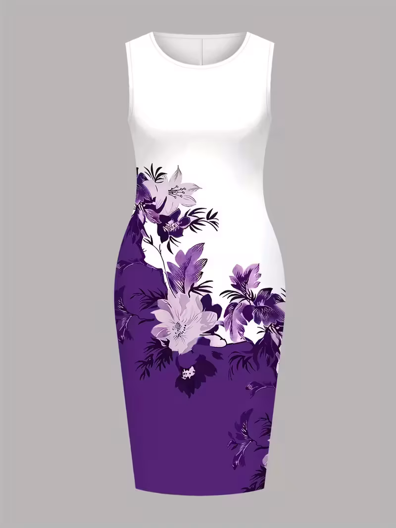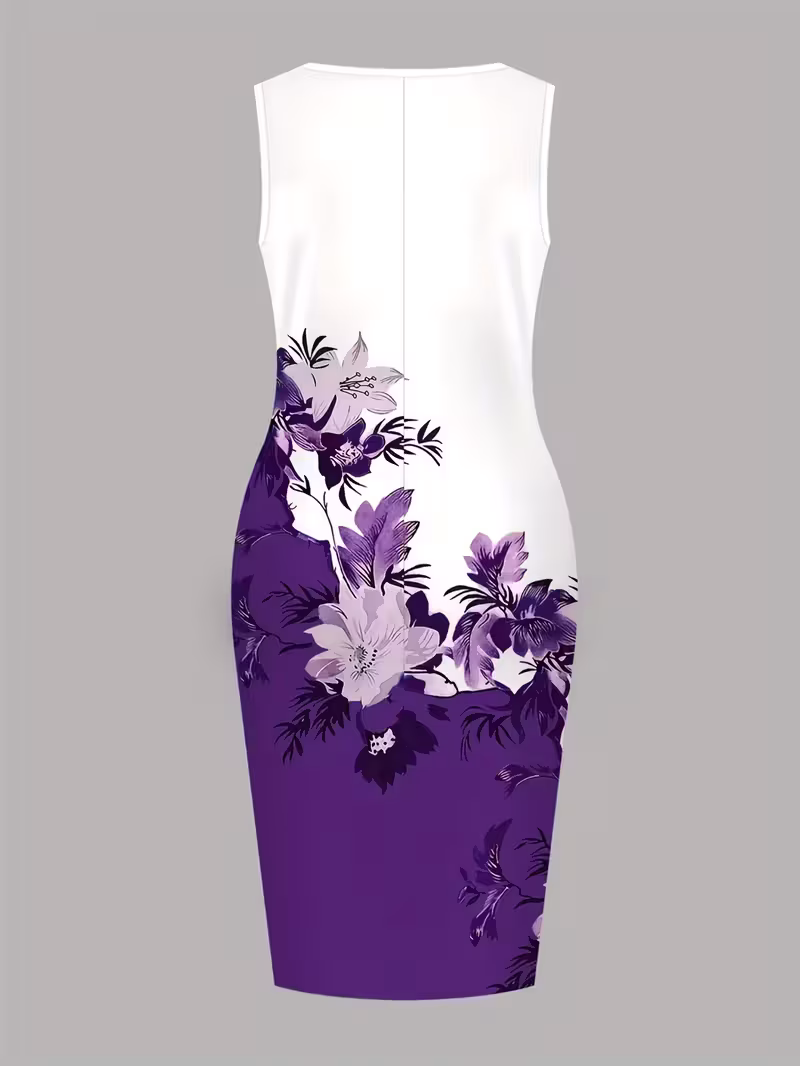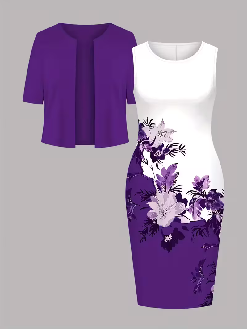 New Elegant Women's Two-Piece Solid Color Short Sleeve Cardigan with Floral Print Dress