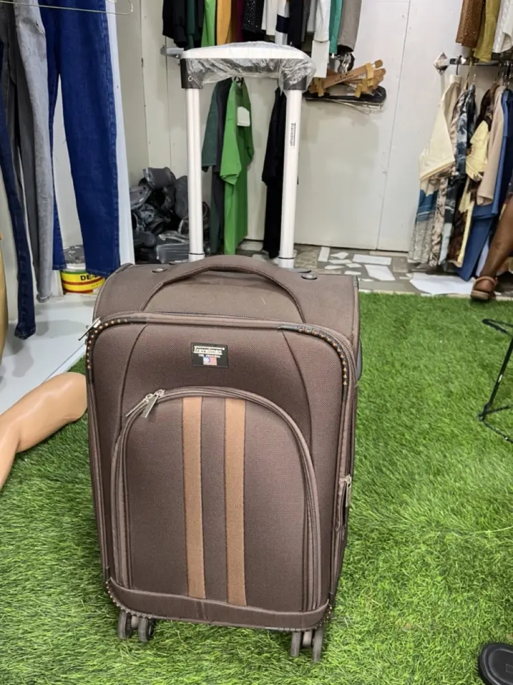 Tags:suitcase, Soft-shell, brown trolley, vertical stripes, front