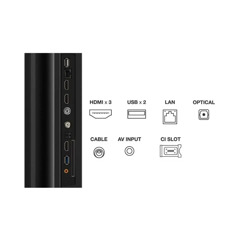 - Ports: Typically includes 3 HDMI ports (including 1x HDMI 2.1 with eARC), 2 USB ports (1x 3.0, 1x 2.0), Ethernet, and an optical audio output.