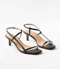 Design: Kitten-heel sandals with a double front strap and an open-back slingback-style strap.