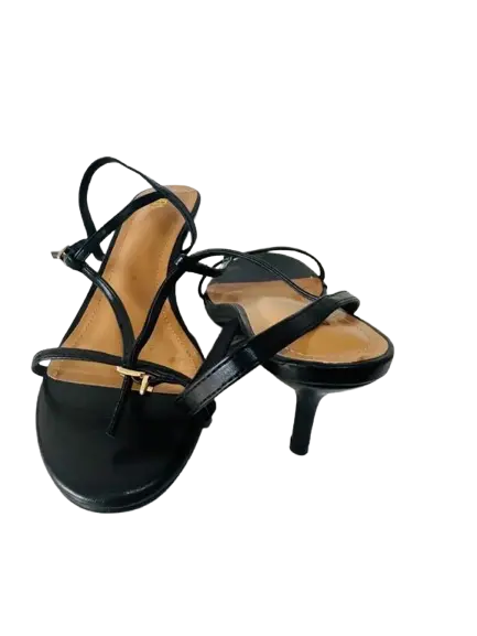 Key Features: Square-ish or round toe, metal hardware accents on the toe strap, and an adjustable ankle strap with a metal buckle.