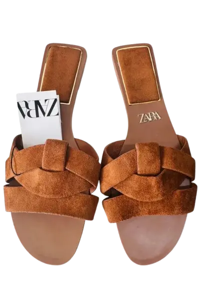 Design: Criss-cross or knotted suede straps with a flat silhouette.