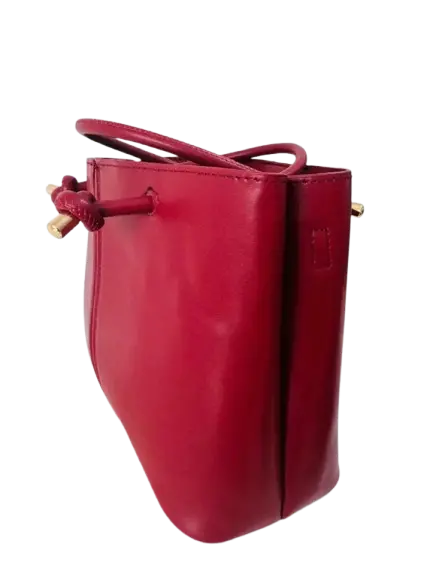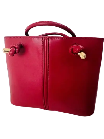 • Aesthetic: Features a rigid, structured body with distinctive knotted accents on the front where the handles attach.