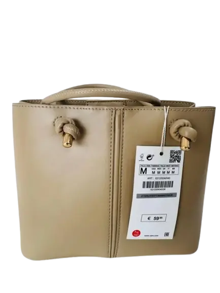 In the photo, the Zara brand label is visible on the hanging price tag, confirming it as a piece from their accessories collection. This specific model is frequently released in neutral "capsule" colors like beige (as shown), black, and ecru.