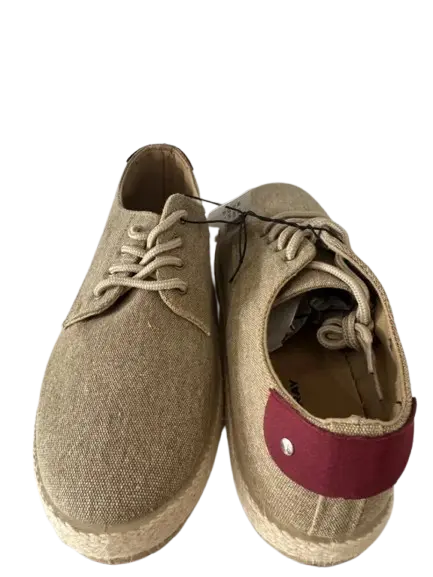 • Material: The upper features a textured, coarse-weave fabric that resembles hemp, burlap, or heavy canvas. This gives the shoe a rugged yet breathable look.