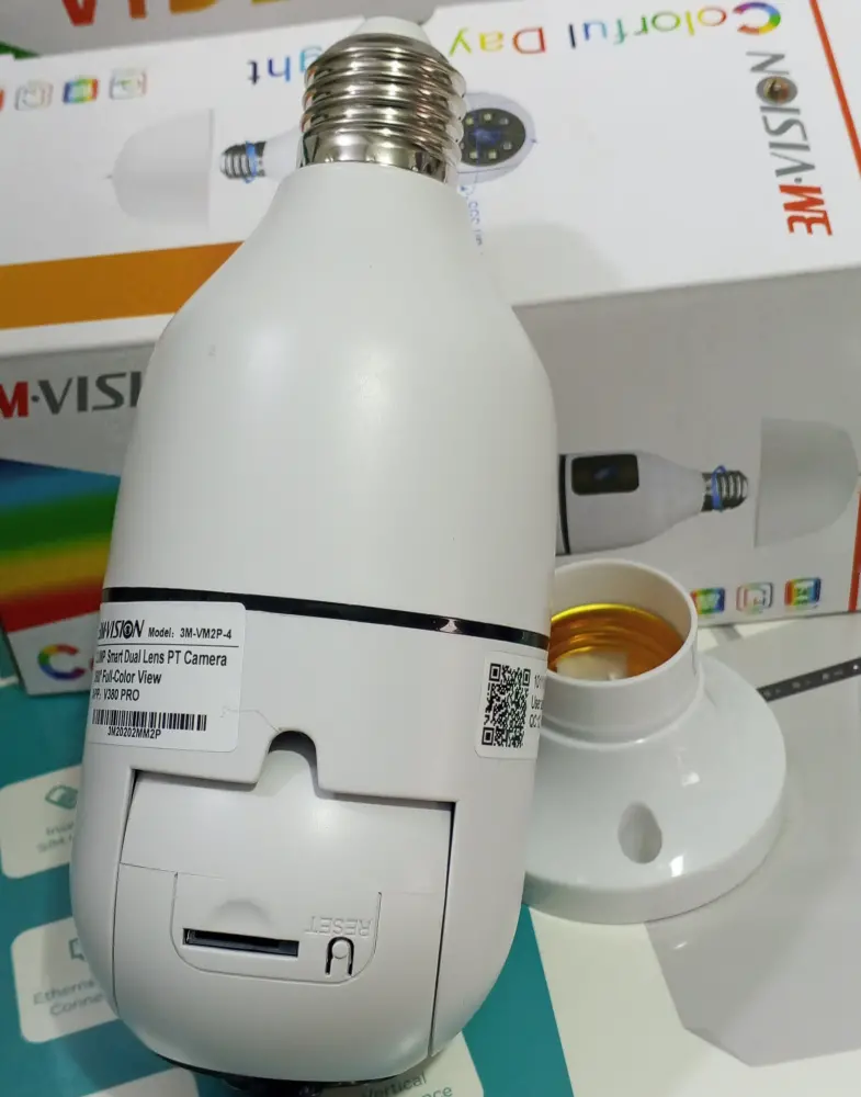 Package Contents: Usually includes the dual-lens camera, an E27 socket adapter, and an instruction manual.
