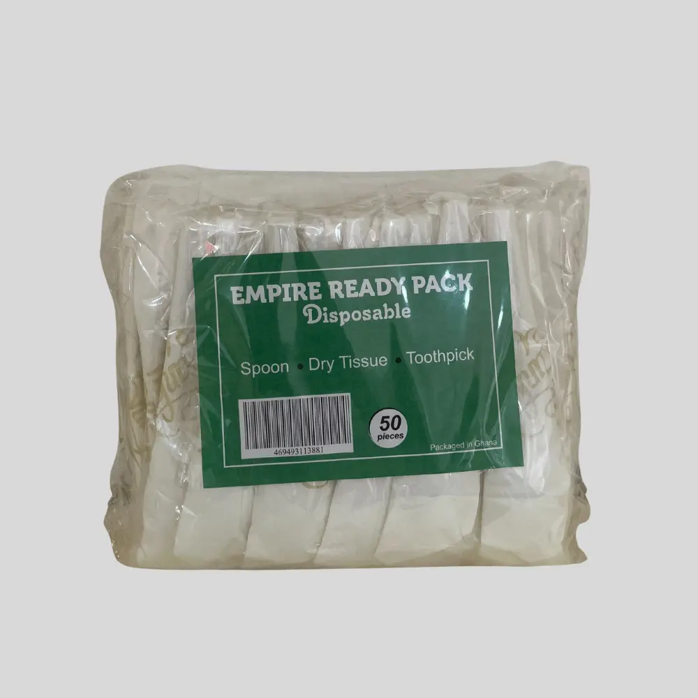This is a package of Empire Ready Pack disposable cutlery and tissues.
