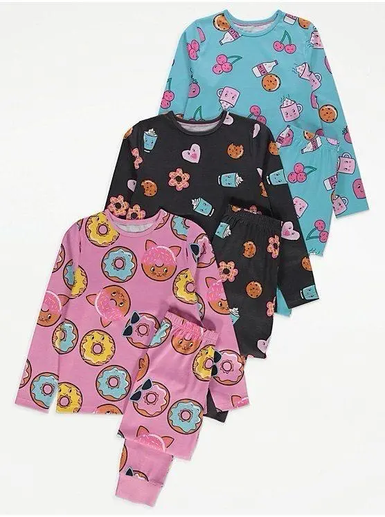 Quantity: 3 sets of pajamas (3 tops and 3 matching bottoms).